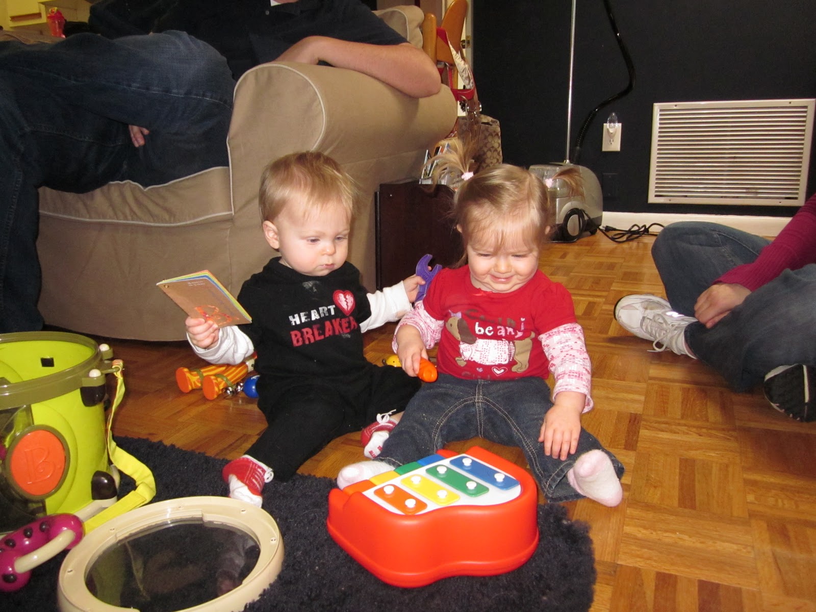 We need to work on this sharing thing. Which reminds me, Jacob has become VERY possessive of his toys. This is pretty new since at his birthday party he didn't care who played with them. I first noticed it when I had the playgroup at my house last week. Jacob got really upset and tried to take his toys away from everyone! Even if he had a toy in each hand, he'd still go after another toy that someone was holding.